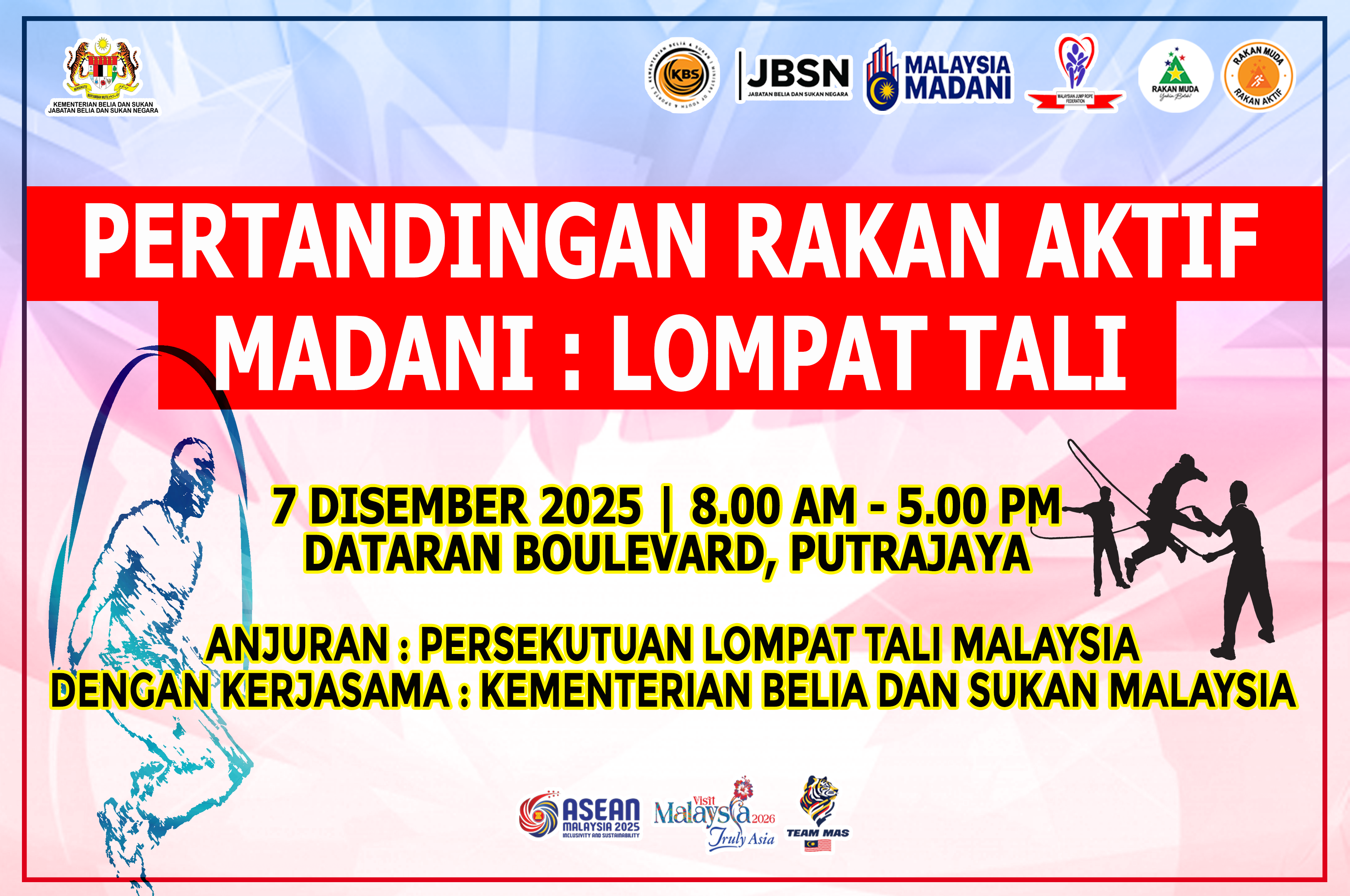 Tahniah dan Syabas kepada semua pemenang Pertandingan Lompat Tali Terbuka Kementerian Belia dan Sukan Malaysia yang telah berlangsung pada 19-21 Julai 2024 di IOI Mall Putrajaya.